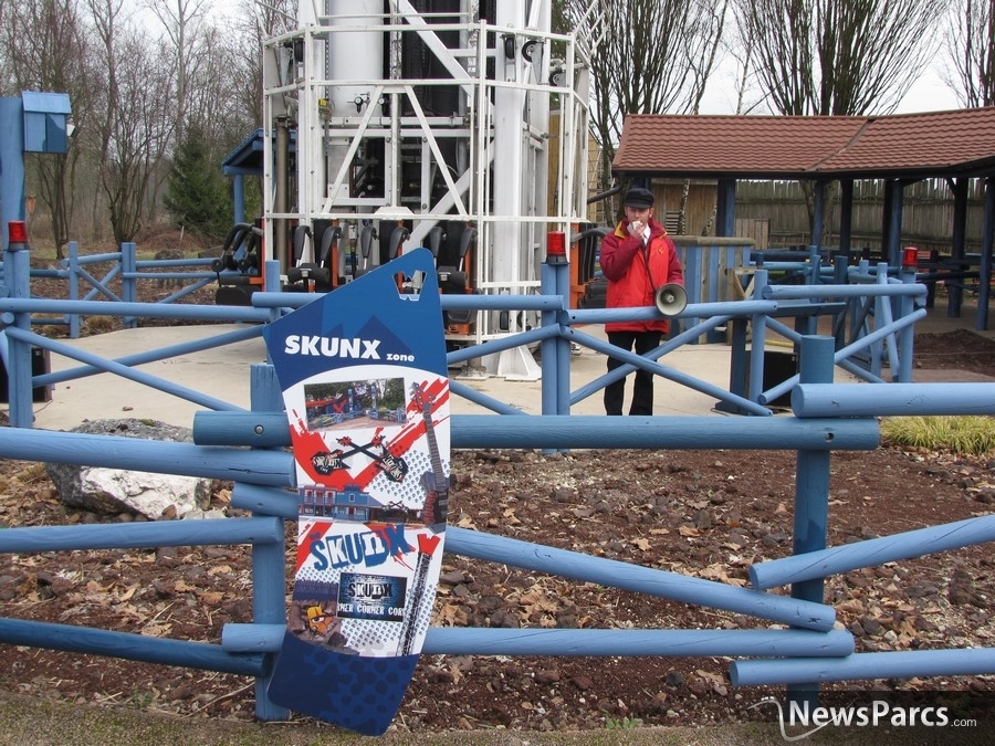 Ainsi, la zone SkunX Club sera à l’image de Squad et de sa bande, un espace plutôt urbain et décadent avec au menu des tags, bidons, ferrailles et des couleurs sombres allant du bleu au noir en passant par le gris. « Ils ont cassé pas mal de choses » précise Luc de Roo avant d’ajouter « Nous avons prévu des dégradations volontaires, une touche un peu destroy ! » On y trouvera notamment l’attraction « Stock Cars » et « The SkunX Tower », l’ancien Totem Infernal (un Space Shot S&S inauguré en 1998) reconverti en style industriel et hard rock. Les barrières ont été repeintes, la file d’attente redécorée et des effets ont été ajoutés : musique, flash lumineux et fumigènes !